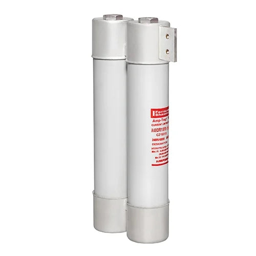 Mersen R-Rated fuses are current-limiting, high interrupting rating fuses intended for the short circuit protection of medium voltage motors and motor controllers. R-Rated fuses are back-up fuses that have a minimum interrupting rating, and must be coordinated with overload relays in combination motor starters. The motor starter manufacturer generally specifies the R-Rated fuse size. These fuses come with a 3 (size D) or 4 (size E) inch diameter barrels with ferrules and are mounted in spring reinforced clips