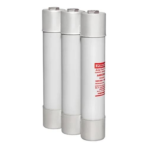 Mersen R-Rated fuses are current-limiting, high interrupting rating fuses intended for the short circuit protection of medium voltage motors and motor controllers. R-Rated fuses are back-up fuses that have a minimum interrupting rating, and must be coordinated with overload relays in combination motor starters. The motor starter manufacturer generally specifies the R-Rated fuse size. These fuses come with a 3 (size D) or 4 (size E) inch diameter barrels with ferrules and are mounted in spring reinforced clips