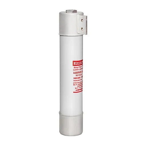 Mersen R-Rated fuses are current-limiting, high interrupting rating fuses intended for the short circuit protection of medium voltage motors and motor controllers. R-Rated fuses are back-up fuses that have a minimum interrupting rating, and must be coordinated with overload relays in combination motor starters. The motor starter manufacturer generally specifies the R-Rated fuse size. These fuses come with a 3 (size D) or 4 (size E) inch diameter barrels with ferrules and are mounted in spring reinforced clips