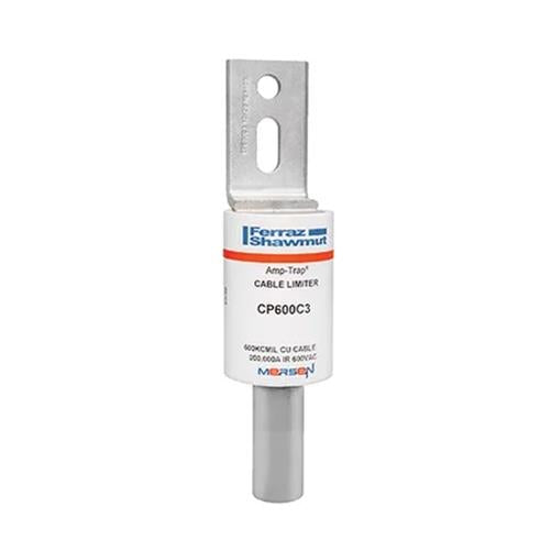 Mersen CP Cable Protectors are special purpose limiters which are crimped or bolted to cables or terminals to clear and isolate faults quickly, increasing the reliability of service entrance and distribution runs. CP Cable Protectors have a 200,000A interrupting rating, yet will carry low cable overloads which are handled by standard protective devices. Cable protectors are rated in terms of cable size and material (Al or Cu). Heavier duty CPH cable protectors are available on special order. Heat shrinkable (HS) tubing can be specified for field installation. TI blown fuse trigger indicators may be available upon request. Refer to the application information section for more information.