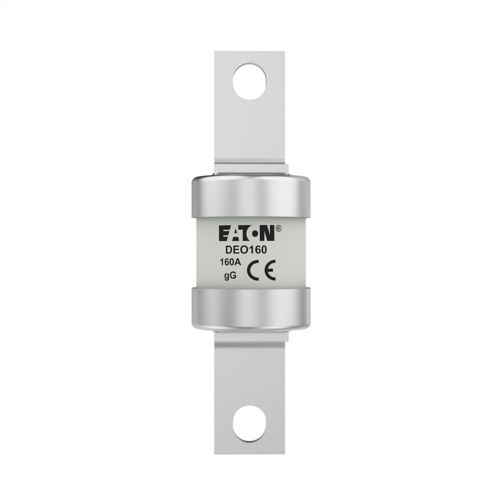 Bussmann DEO Series is a British Standard (BS88) fuse links designed for general industrial and motor applications. These are high rupture capacity (HRC) fuses with offset bolted tags, featuring characteristics like good peak let-through current limitation and specific gG/gL utilization categories for general equipment protection. They are suitable for 415V AC systems and have an 80 kA breaking capacity.