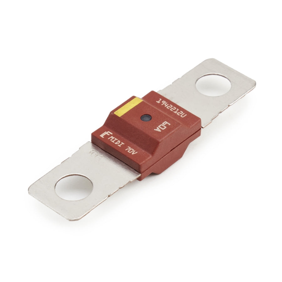 Space-saving MIDI® fuses protect high-current wiring harnesses. The bolt-down automotive fuses employ diffusion pill technology to offer time-delay characteristics. Use MIDI fuses with ratings of 150 A to 200 A only for short circuit protection.