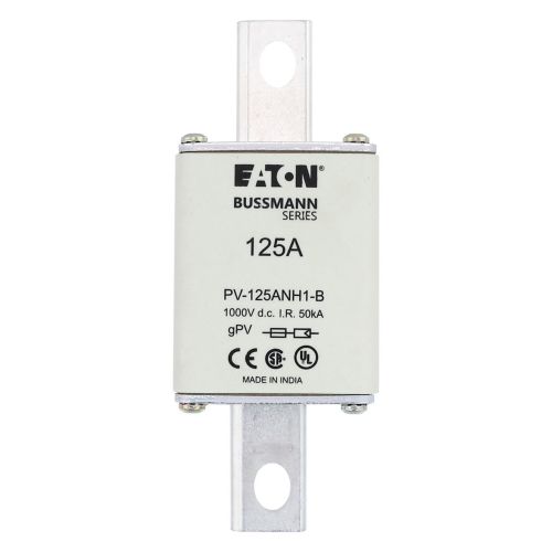 Bussmann’s range of NH size photovoltaic fuse links is specifically designed to protect and isolate photovoltaic array combiners and disconnects. These fuse links are capable of interrupting low overcurrents associated with faulted PV systems (reverse current, multi-array fault).