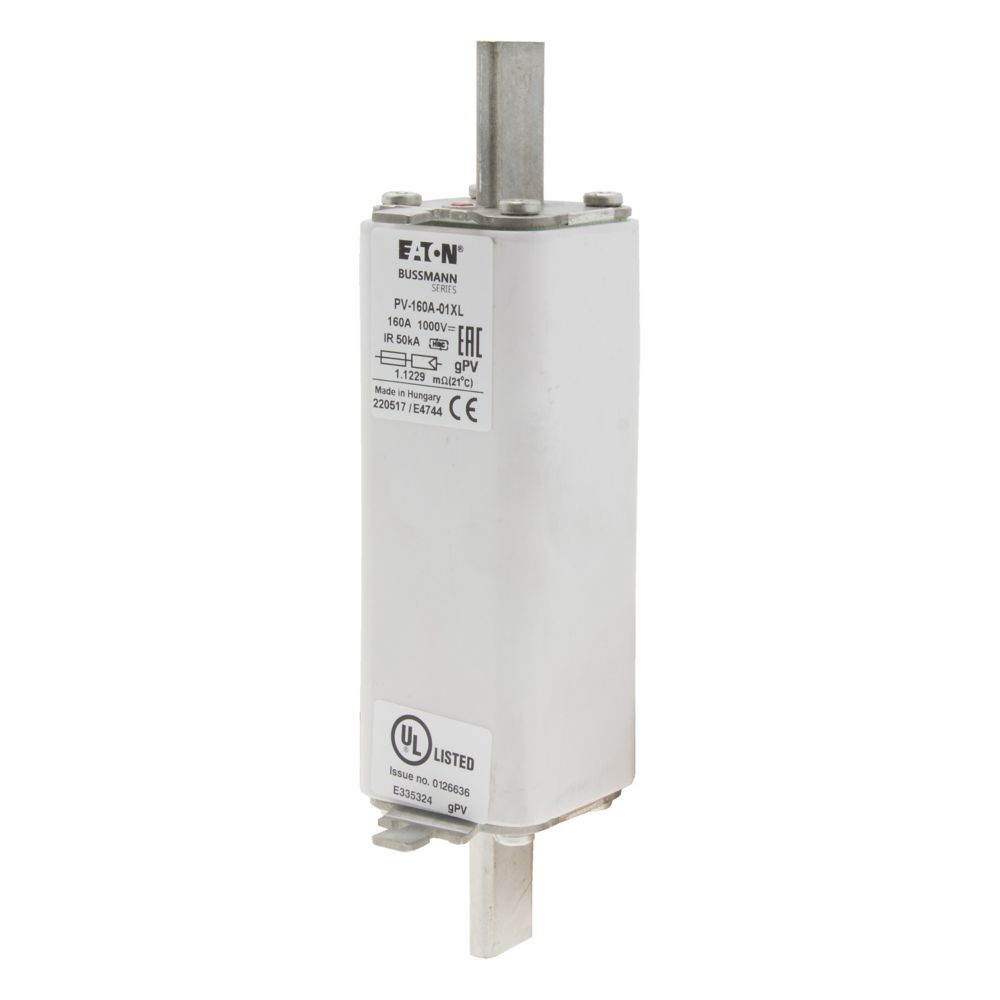 Photovoltaic fuse links, fuse bases and holders. A range of XL package bladed fuse links specifically designed for protecting and isolating photovoltaic array combiners and disconnects. These fuse links are capable of interrupting low overrated currents associated with faulted PV systems (reverse rated current, multi-array fault).